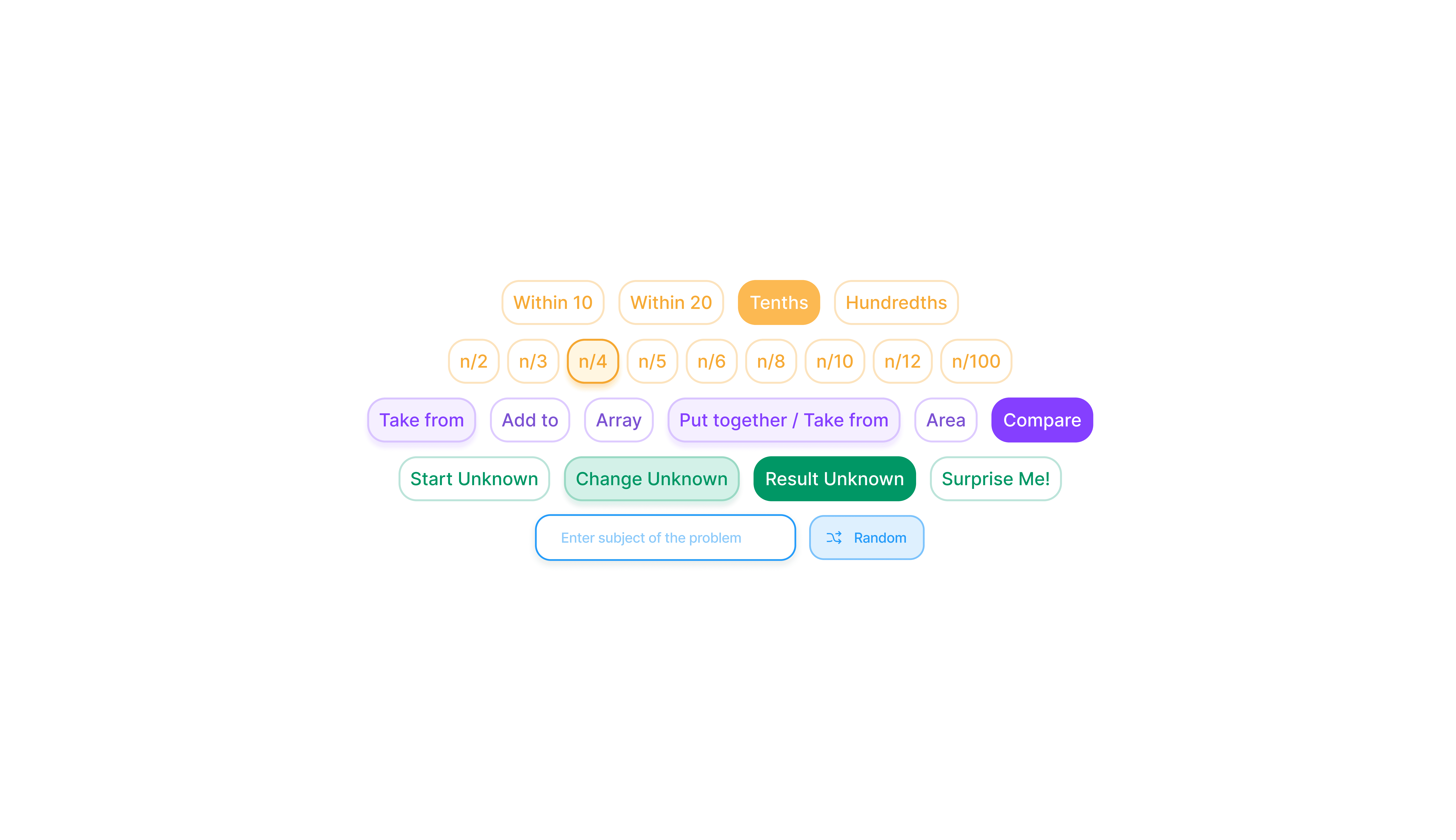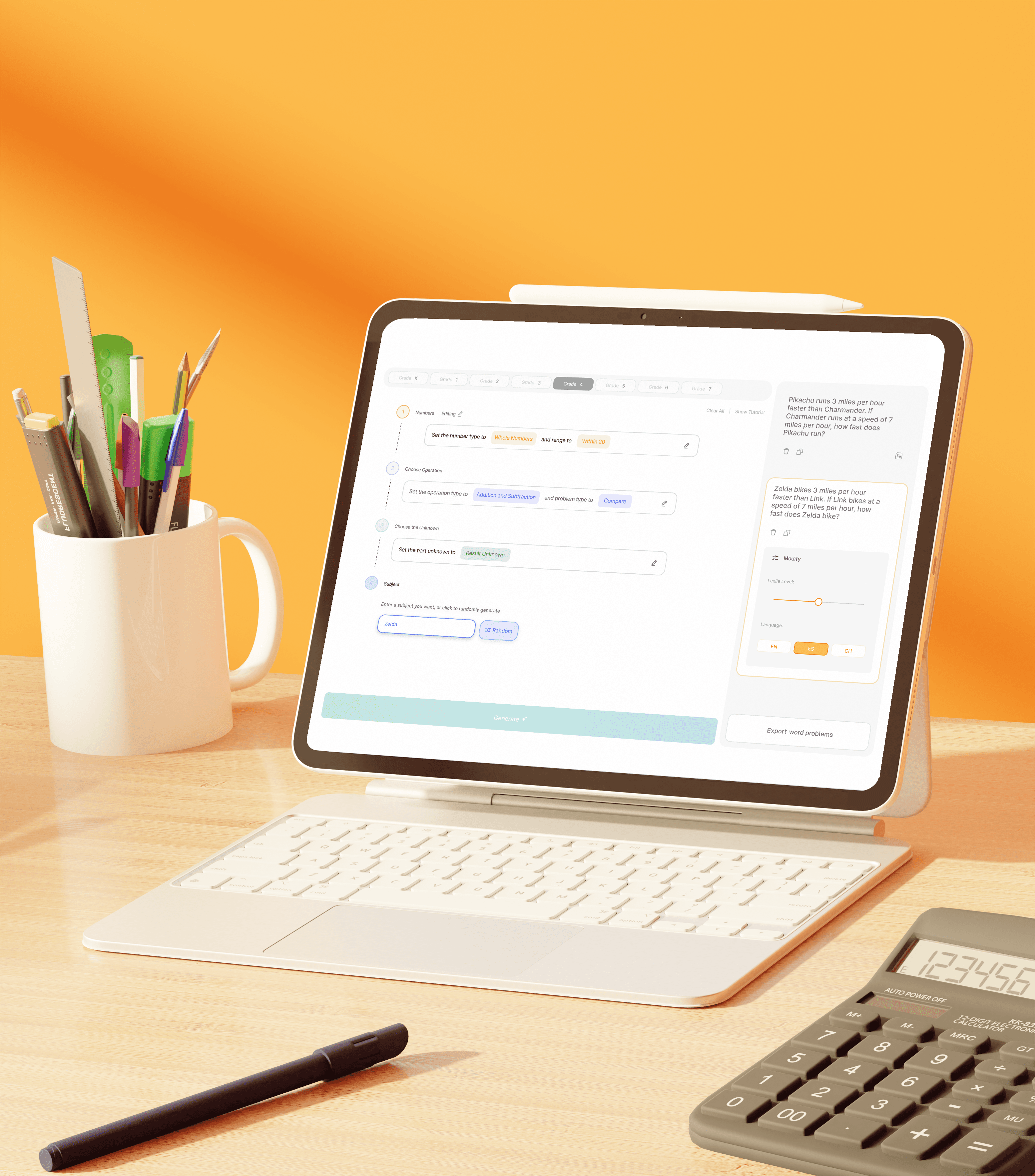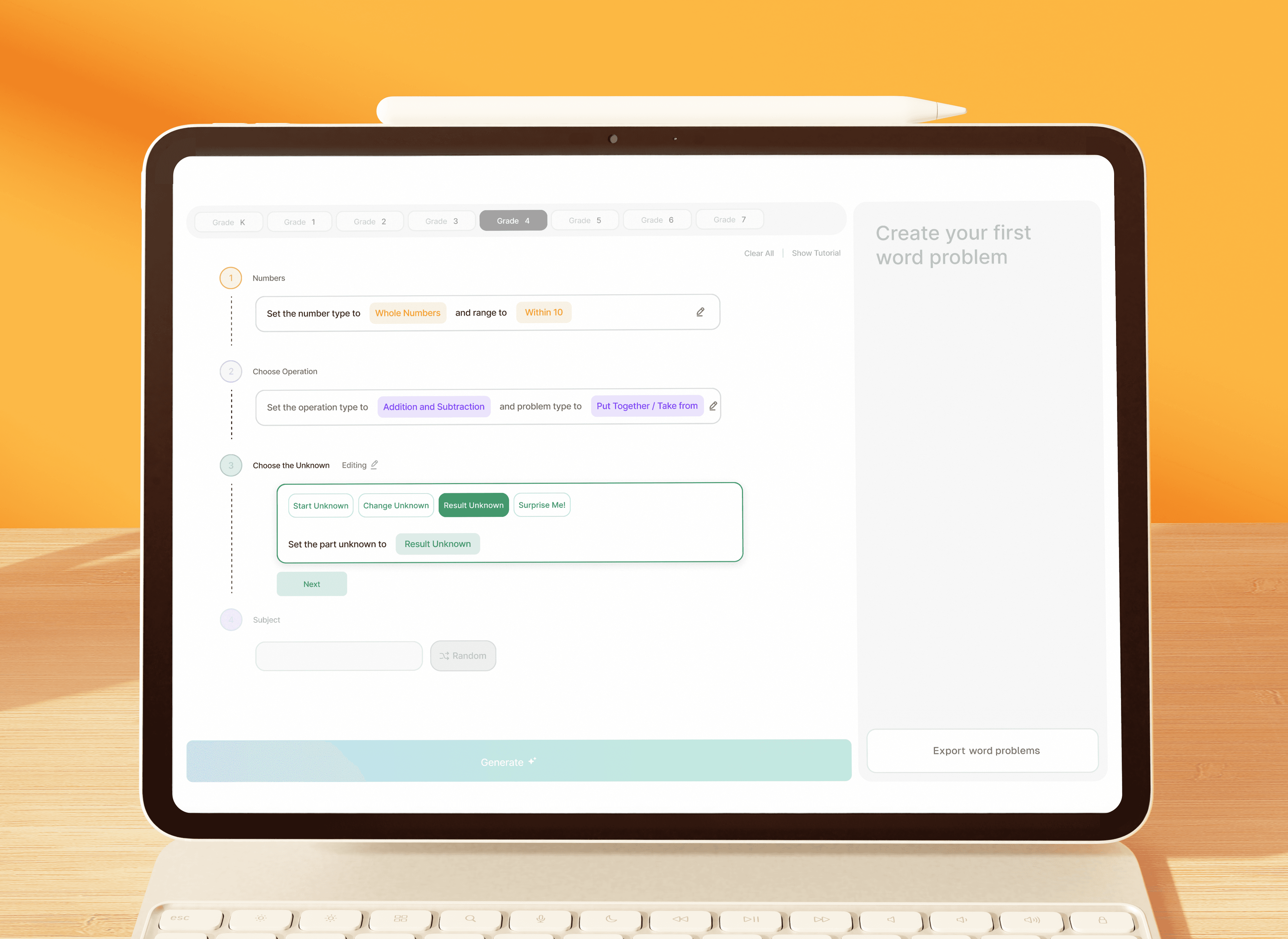 During class teachers can use this tool to create a word problem that builds on classroom discussion or helps illustrate a point that might need extra focus.